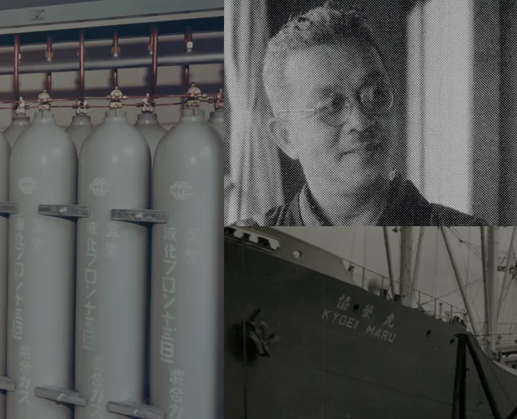 設立初年、炭酸ガス消火装置(船舶向け)の販売を開始。協栄丸をはじめ18隻の貨物船に炭酸ガス消火設備を納入。