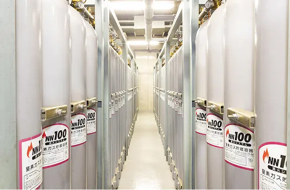 安全、環境に配慮した、現在のスタンダードである消火システムNN100。主成分が空気の約8割を占める窒素のため人体への安全性がきわめて高く、重要なデータや機器を守る必要があるコンピュータールームや、かけがえのない文化財を収蔵する美術館や図書館などに最も推奨される選択肢となります 。