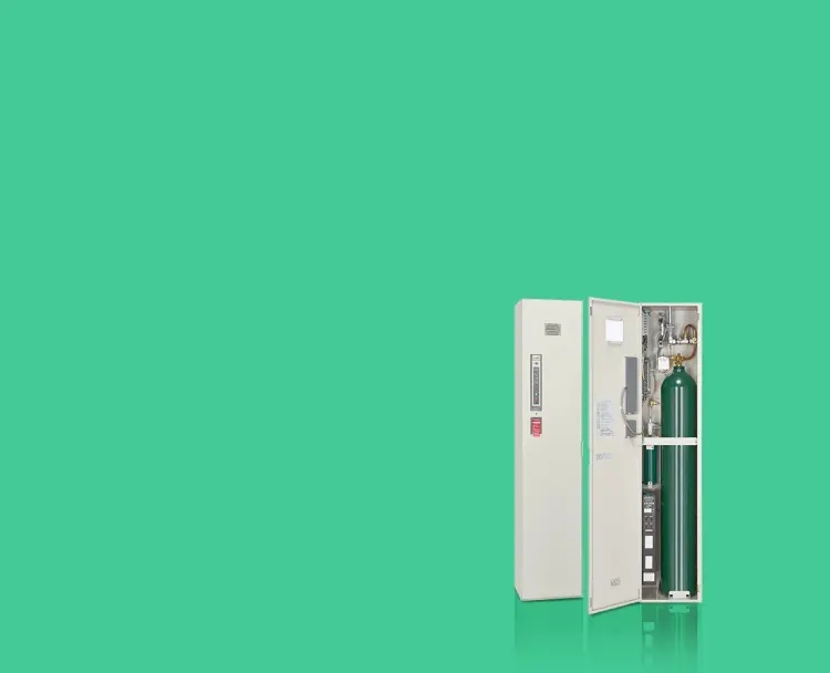 貯蔵容器、起動用ガス容器および制御装置(制御盤、音声装置、蓄電池設備、手動起動装置、閉止弁)を内蔵する基本となるパッケージです。