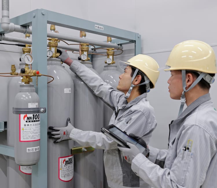 - 火災等でガスを放出した時もすばやく補充できる体制を確立しています。